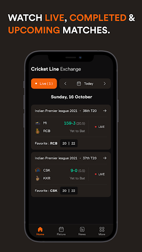 Cricket Line Exchange LiveLine also provides multiple match live update in one screen to played at different locations. Enjoy live match update of T20, ODI, IPL, Test cricket, and other matches. The advantage of live match update with Cricket line Exchange LiveLine is with your mobile phone is that you can watch them anywhere, anytime!