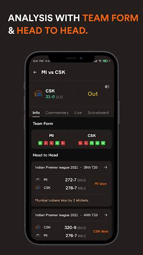 Stay up-to-date with live cricket match updates, including detailed scorecards, venue details, playing XI and squads, live ball by ball commentary, and session. Our app also provides finished match complete details.