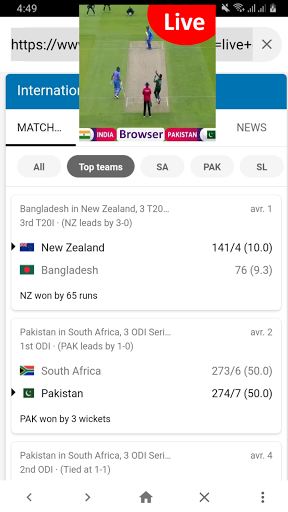 Cricket Live Streaming Browser with Guide application for India, Pakistan, and Bangla cricket crew matches news, cricket matches plan, live ten games plan program, Gazi television plan, willow television plan program, live ptv sports and live cricket television plan refreshes. This application permits you to remain refreshed with live cricket television matches in the program regardless of where you will be, you simply need to have (3G, 4G, or wifi) Internet association and cell phone, and you are all set.