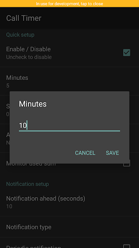 Auto hang up: user sets time limit once and the application will be in standby mode; whenever there is an outgoing call or incoming call (optionally), the application will be activated and begin to time the call.