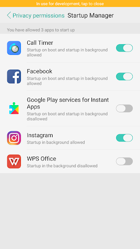 Go to Security Center → Privacy permissions → Startup Manager. Then turn on Call Timer to allow it startup in background.