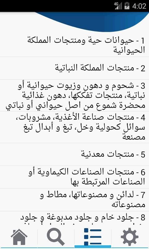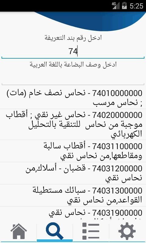 - يمكن البحث عن بند تعريفة محدد عن طريق جزء من رقم البند أو جزء من وصف البند.