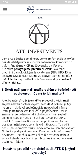 Siamo gli investimenti ATT - professionisti con oltre dieci anni di esperienza nei mercati finanziariamente delle materie prime.Forniamo servizi per te che proteggono i tuoi soldi dall'inflazione crescente.Gli investimenti ATT contengono informazioni importanti sulla società.Qui troverai tutte le informazioni su di noi, i servizi che forniamo contatti su rami e molto altro.