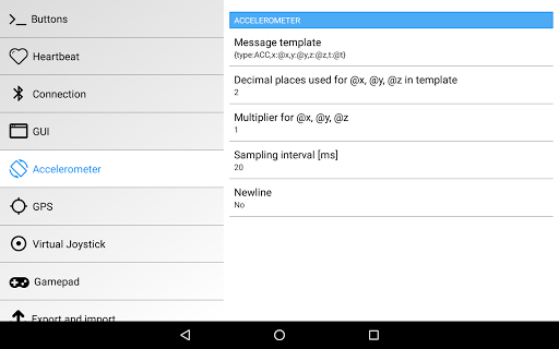 • accelerometer support in the form of customizable templates of the sent messages