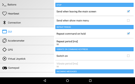 • possibility to set repeating of the sent commands when holding down a button and its period