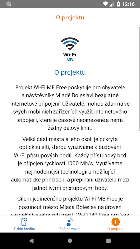 Projekt Wi-Fi MB Free poskytuje pro obyvatele a návštěvníky Mladé Boleslavi bezplatné internetové připojení. Uživatelé, mohou zdarma ve svých mobilních zařízeních využít internetového připojení, které je časově neomezené a nemá žádný datový limit. Velká část města a jeho okolí je pokryta optickou sítí, kterou využíváme k budování Wi-Fi přístupových bodů. Každý přístupový bod je připojen rychlostí 1000 Mb/s. Využíváme nejmodernější technologii umožňující automatické přihlášení a přepínání uživatelů mezi jednotlivými přístupovými body. Cílem jedinečného projektu Wi-Fi MB Free je posunout město Mladá Boleslav na úroveň vyspělých světových měst. Wi-Fi MB Free pro Vás zajišťuje bezpečný přístup k internetu.
