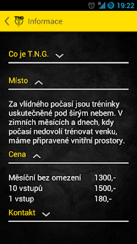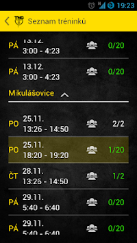 Aplikace slouží pro zobrazení informací o TNG, přihlašování na tréninky a zobrazení statistik a informací uživatele.