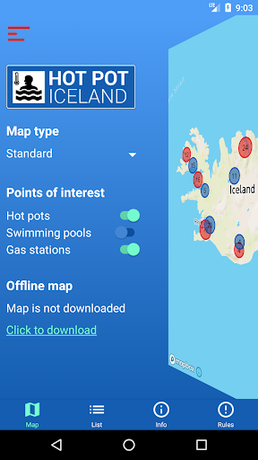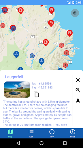 This application was created to solve a problem of deficiency of internet connection on Iceland, with our app you can download an offline map and you are ready to go! We locate your location with GPS, so you know where you are and mainly what amazing places are nearby you. Always remember to be responsible and please follow the bathing rules to make your impact on nature as low as possible!