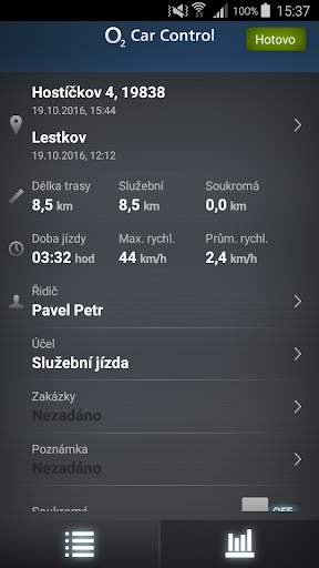 - Trasy - V tomto modulu vidíme výpis tras daného vozidla zajetých za posledních 30 dnů. Pokud nějakou trasu vyberu, zobrazí se její detaily a mohu ji zobrazit na mapě či editovat údaje