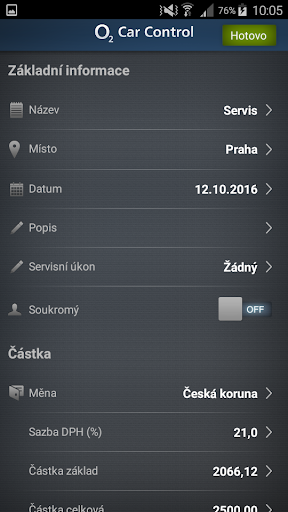 - Výdaje - Umožňuje zadání výdaje za tankování či jiný výdaj pro dané vozidlo