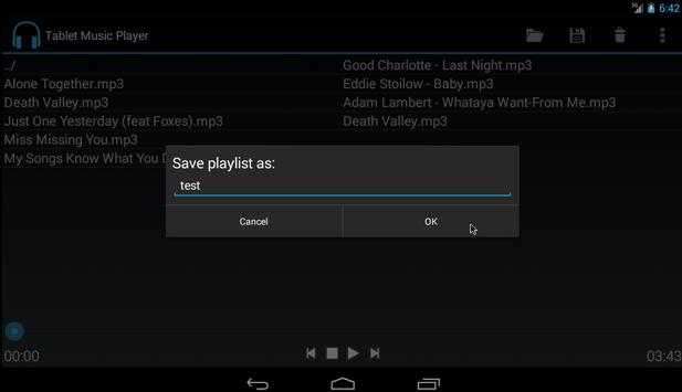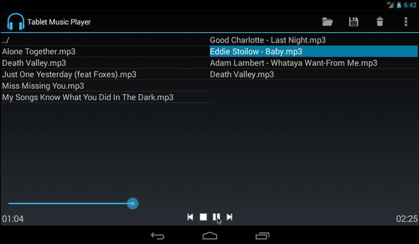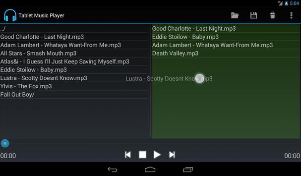 Music player for tablet vith two panels, supports drag and drop. No Ads.