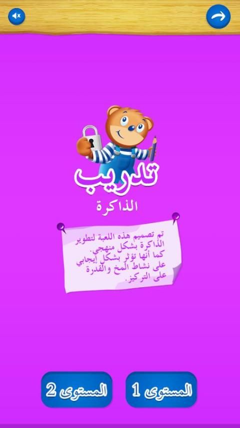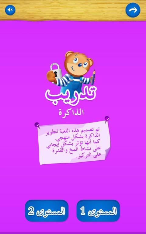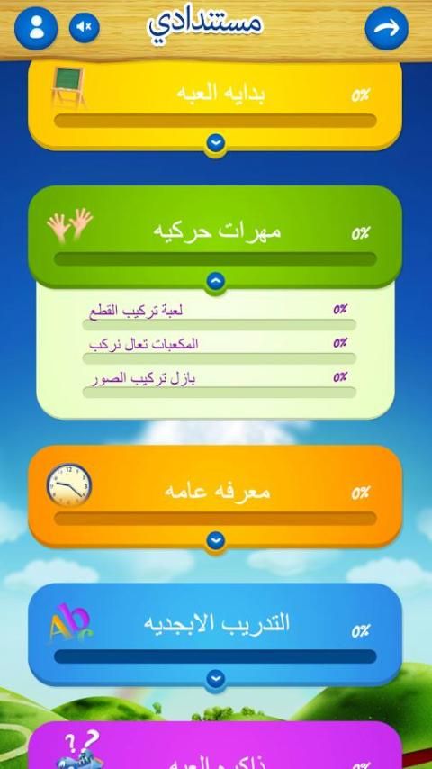 This application is a modern and fun design, where the games are divided into various categories, including those that focus on the development of intellectual skills such as memory-related games, and learn the alphabet, and games that encourage the public to understand the logic and information. You can also follow the progress made by the new page in your profile, and which are specially designed to interact with you and encourages you and your children the continuity and excellence.