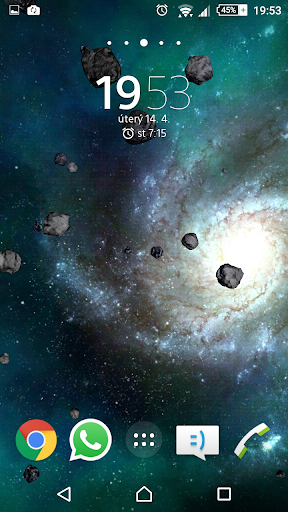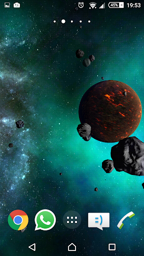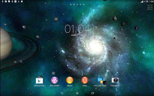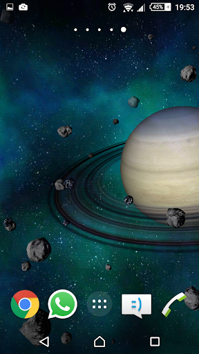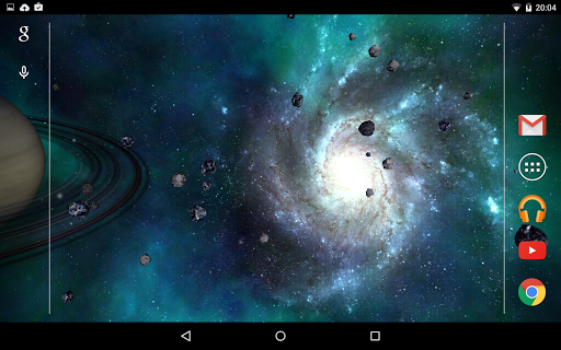 Universe Live Wallpaper from some distant unknown place in endless space. Enjoy feeling of flying thru asteroid belt near gas giant with rings to distant spinning galaxy.