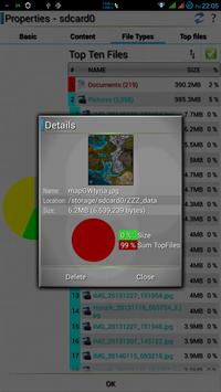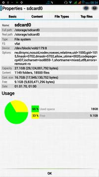 * detailed Storage Analysis - shown details about storage (sdcard, int.storage), largest files folders, filetypes - user can delete files/folder directly from Storage Analysis! * storage list (system mountpoints)