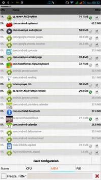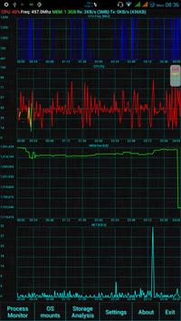 MK System Monitor (SysMon) is a system monitoring utility which monitors CPU / memory and network of your Android device and shows this data in nice graphs.