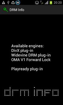 DRM Info is simple tool, for technicians, developers or common users, that list available DRM plugins, installed on your device like OMA, Widevine, BB, PlayReady ...