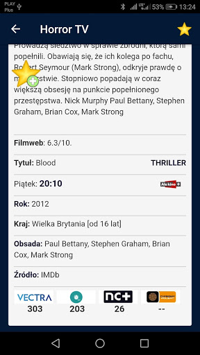 program telewizyjny z informacjami wyłącznie o filmach z gatunku horror i thriller