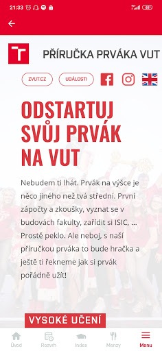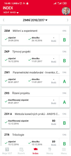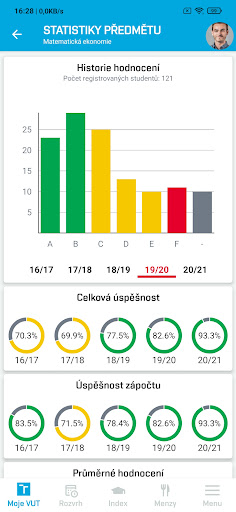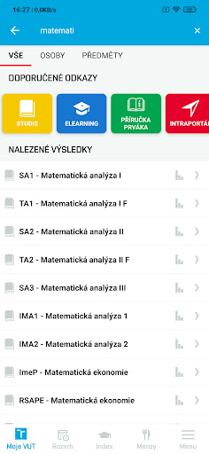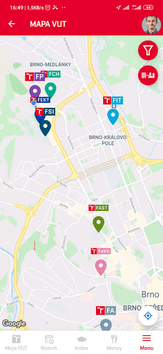 The mobile application for students and, in part, also employees at BUT is an everyday assistant at the university. Here you will find an overview of your study successes and your agenda. You can find a building or a room where he has classes on the map. It is easy to find your teacher's schedule or subject to arrange consultations or replace courses. You can use the application to top up money on the canteen account and much more.