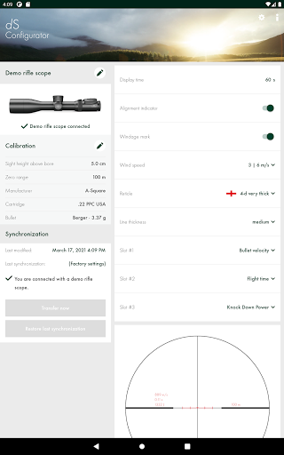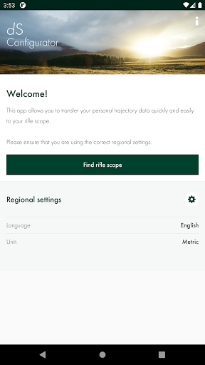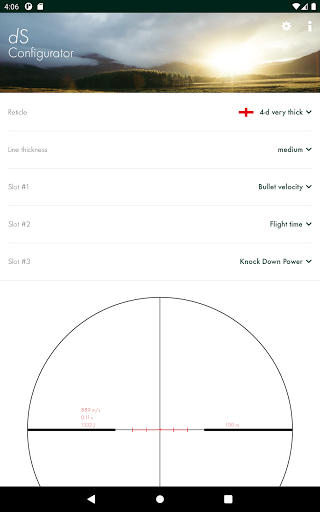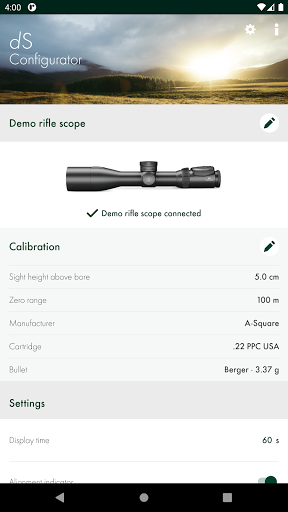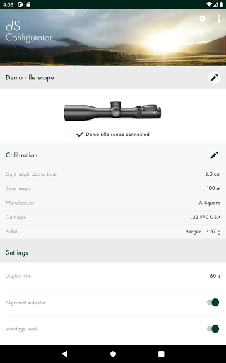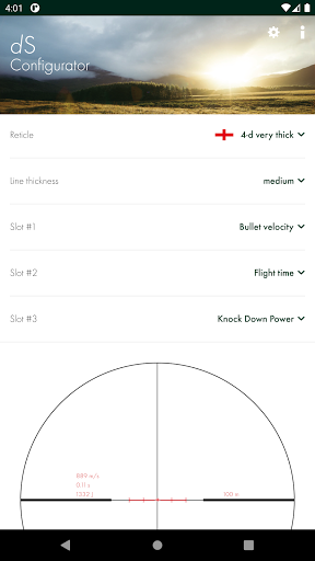 The dS Configurator app helps you to set the dS to your personal firearm/ammunition combination and to customize the display.