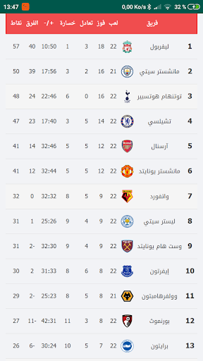 قسم ترتيب الدوري : ويعرض ترتيب فرق الدوري بعد كل جولة .