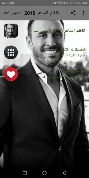تطبيق يمكنكم من الإستماع على مجموعة من أجمل الأغاني و روائع كاظم الساهر 2018 الحصرية على الساحة الفنية لسنة 2018 ؛ حيت يحتوي البرنامج على منوعات غنائية عراقية و أخرى عربية .