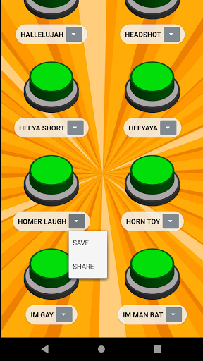 To use a meme you just have to press the green button with the name. It will play quickly on your cell phone! To download or share, just press the arrow next to the name and then SAVE to save and SHARE to share. It's that simple!