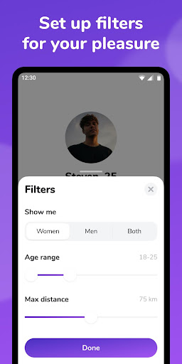 Nuzzle shows you people nearby according to your gender and age choice. Like anyone? Just swipe right! If it’s a match you can chat and get to know each other better. Remember: as high your activity as high your chances.