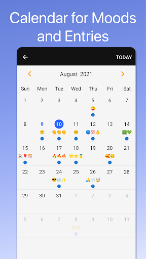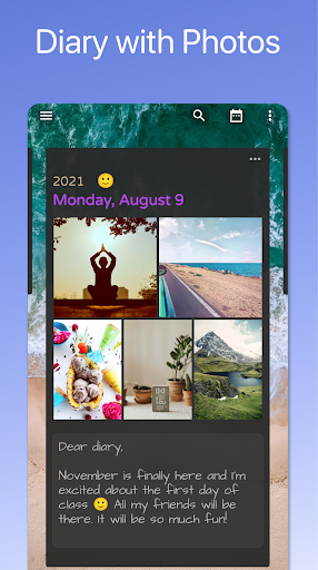 Use it to record your daily notes and memories. You can add your photos and images and select moods for the day which also display on a calendar.