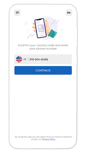 ❶ First, open the app and confirm your country code then enter your mobile number.