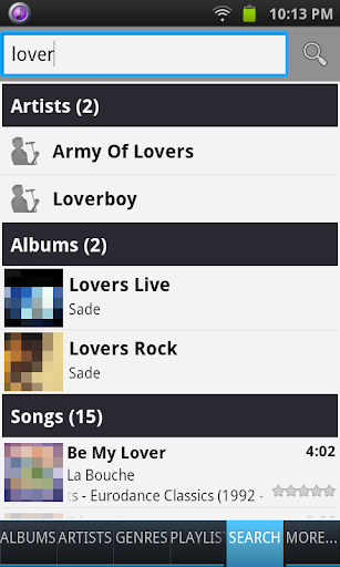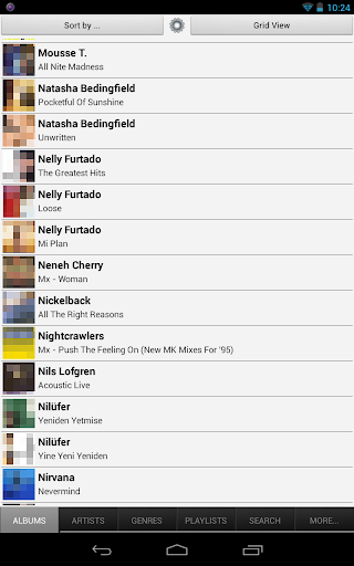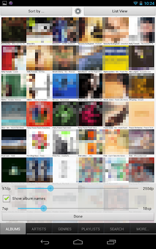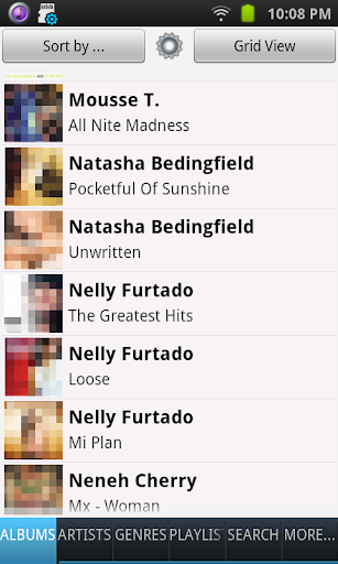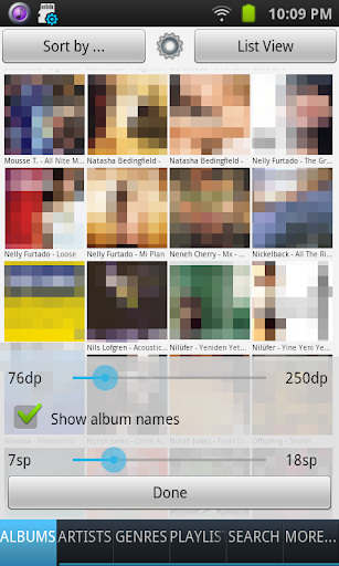 • Album list sortable by album name or artist name