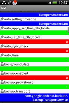 Displays all system settings stored in the system wide preference database. Public settings are indicated by a pen icon, secure ones by a lock icon.