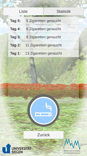 Ziel des Projekts ist es, die Wirksamkeit einer eigens hierfür entwickelten Smartphone-App zu untersuchen, die Raucher auf ihrem Weg zur Abstinenz unterstützen soll. Bei der App handelt es sich um ein Verhaltenstraining gegen das Rauchen, das Teilnehmer*innen für eine Trainingszeit von zwei Wochen nutzen können. Zusätzlich finden drei Termine vor Ort (Adolf-Reichwein-Campus, Universität Siegen) statt, um die Wirksamkeit der App auf das Rauchverhalten zu untersuchen. Nach Ablauf der Studie kann man die App weiter nutzen.