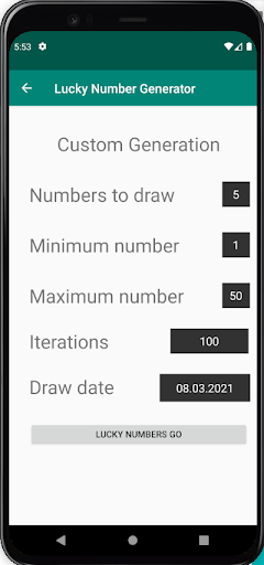 It also have a custom generator where the number of draw can be specified and the range of the drawn numbers. The iterations can be also specified.