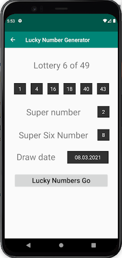 The Lucky Number Generator can generate numbers for the lotto 6 numbers from 1 till 49 and the super number with the super six number.