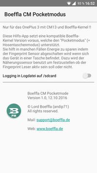 In order to keep the app working when the device is sleeping for longer, the app has to be taken out of Android battery optimization. Do the following: Open roms settings screen, go on Battery, press the three dots and select "Battery optimization". Then click on all apps, search for Boeffla Pocketmode, select it and click on "Don't optimize".
