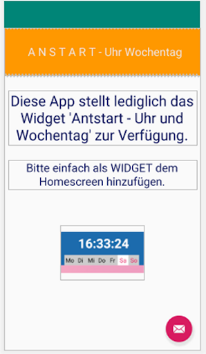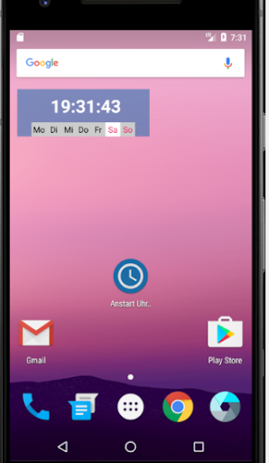 Das Uhrzeit-Widget präsentiert die aktuell laufende Uhrzeit und den aktuellen Wochentag als Markierung in einer Wochentagsliste. Einfach und elegant für den Homescreen.