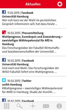 Wissen, was los ist: Die App bietet einen Zugriff auf alle aktuellen Meldungen, die Facebook-Seite und den Twitter-Feed der Universität Hamburg.