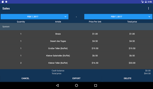 Are you looking for a cash desk application to manage your sales? Test our new Cash Desk 2.0 for tablets. This application was developed, to provide the best possible support to your daily business. With this application, you can simply manage your daily turn overs an export it later.