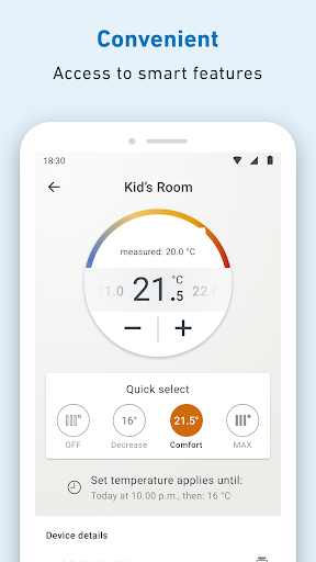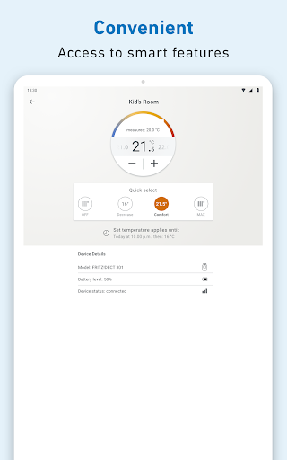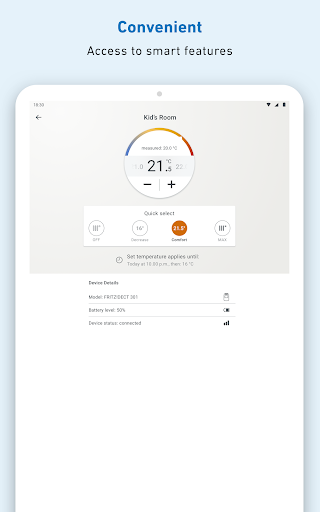 - use the FRITZ!DECT 301 radiator control to heat the living room to the temperature you like, and save money with automatic heating plans.
