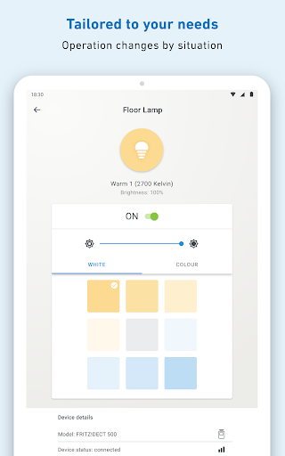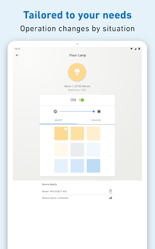 - use the FRITZ!DECT 500 LED light to provide for a feel-good atmosphere in the evening, and stimulating lighting in the morning.