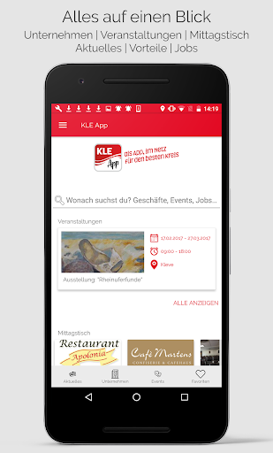Kle app ဖြင့် Kleverland ရှိအထူးဆိုင်များ, စျေးဆိုင်များနှင့်စားသောက်ဆိုင်များကိုသင်ရှာဖွေတွေ့ရှိသည်။ App တွင်ဖြစ်ရပ်များ, စားသောက်ဆိုင်အများအပြား၏နေ့လည်စာနှင့် Kleverland မှသတင်းများလည်းတွေ့လိမ့်မည်။ Kle app အကျိုးအတွက်သင်အကြိုက်ဆုံးဆိုင်များ၏လုပ်ရပ်များနှင့်အထူးလျှော့စျေးများကိုသင်နှစ်သက်သည်။ app ကိုကာကွယ်ခြင်းနှင့်လုံခြုံစိတ်ချမှုများကိုကာကွယ်ခြင်း။