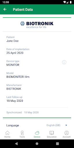 The Patient App from BIOTRONIK SE & Co. KG supports patients in their daily lives with the BIOTRONIK BIOMONITOR. The app is intended for patients who want to be more active in their therapy and take responsibility for their own health.