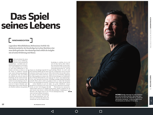 Das offizielle eMagazin der DFL Deutsche Fußball Liga richtet sich an Entscheider aus Sport, Wirtschaft und Politik. Strategische und wirtschaftliche Themen und Trends des Profifußballs sowie aktuelle Entwicklungen der Bundesliga und 2. Bundesliga bilden neben interessanten Porträts und Interviews mit Spielern, Trainern und weiteren Verantwortlichen der Clubs den inhaltlichen Kern des Magazins - und das alles vollkommen kostenlos!