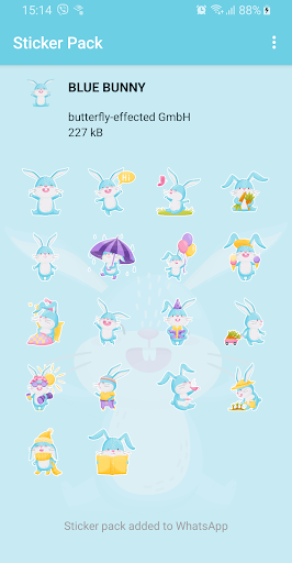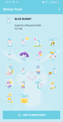 Blue Bunny Stickers - WAStickerApps for WhatsApp is a collection of stickers for WhatsApp starring a blue bunny. Its Easter themed stickers will help you share your emotions with friends and family. It features: