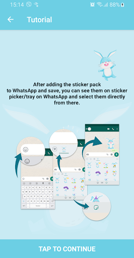 3. Tap "My stickers" tab on top and remove any category using the trash icon. If deleted by mistake, you can always add that category again from Blue Bunny Stickers - WAStickerApps for WhatsApp app.
