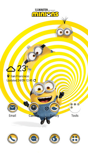 Get the Minions: Yellow Spin theme for your smartphone! Transform the look of your phone with this stylish, custom-designed homescreen and its love motive. It has: