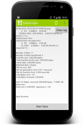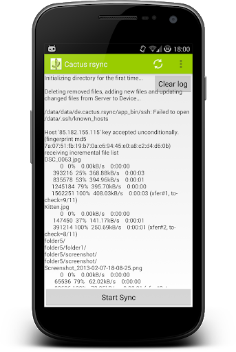 Die App synchronisiert Dateien zwischen einem Server und mehreren Android-Geräten mittels rsync über SSH.