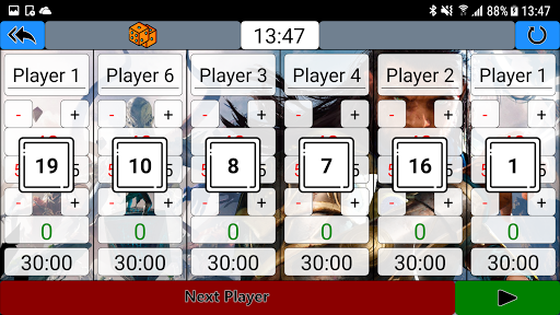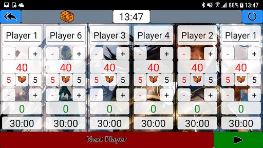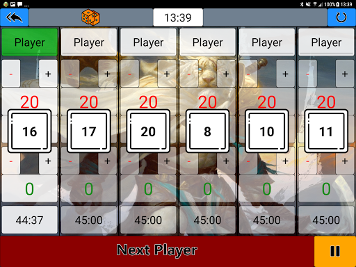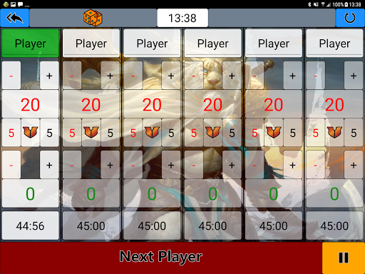 Track your lives with this easy-to-use MTG life counter app. It offers a user-friendly interface and is especially designed for the use with tablets. For every player there is an integrated stopwatch so that you never lose track of your time. The app was developed especially for the highlander/commander format. In addition to normal damage, commander damage can also be managed separately. Up to 6 players are supported.