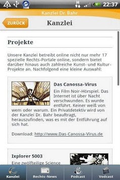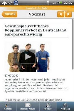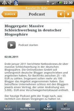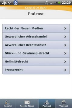Die Kanzlei Dr. Bahr informiert im Schwerpunkt Recht der Neuen Medien. Es werden aktuelle Rechts-News und Urteile sowie Podcasts und Vodcasts angeboten.