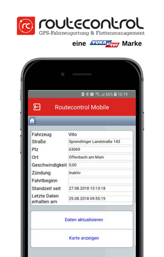 Mit der Routecontrol Mobile App, haben Sie Ihre Fahrzeugflotte auch unterwegs immer im Blick.